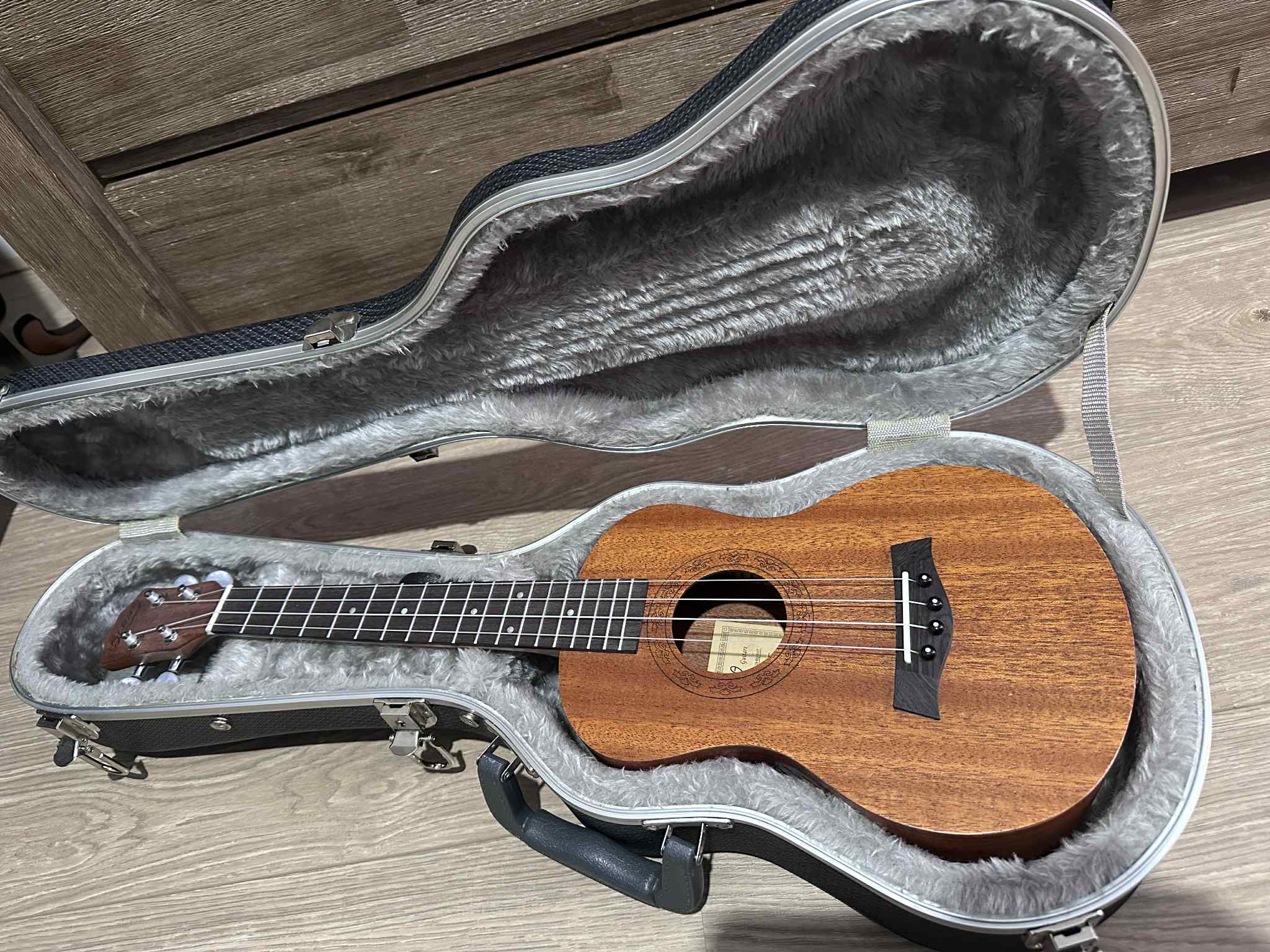 This is a 6-string Aria acoustic guitar. Strings are new and will most likely need to be re-tuned. It's tuned up now but the new strings are touchy. I have included a few guitar picks for use. The back of the guitar has a few chips of paint