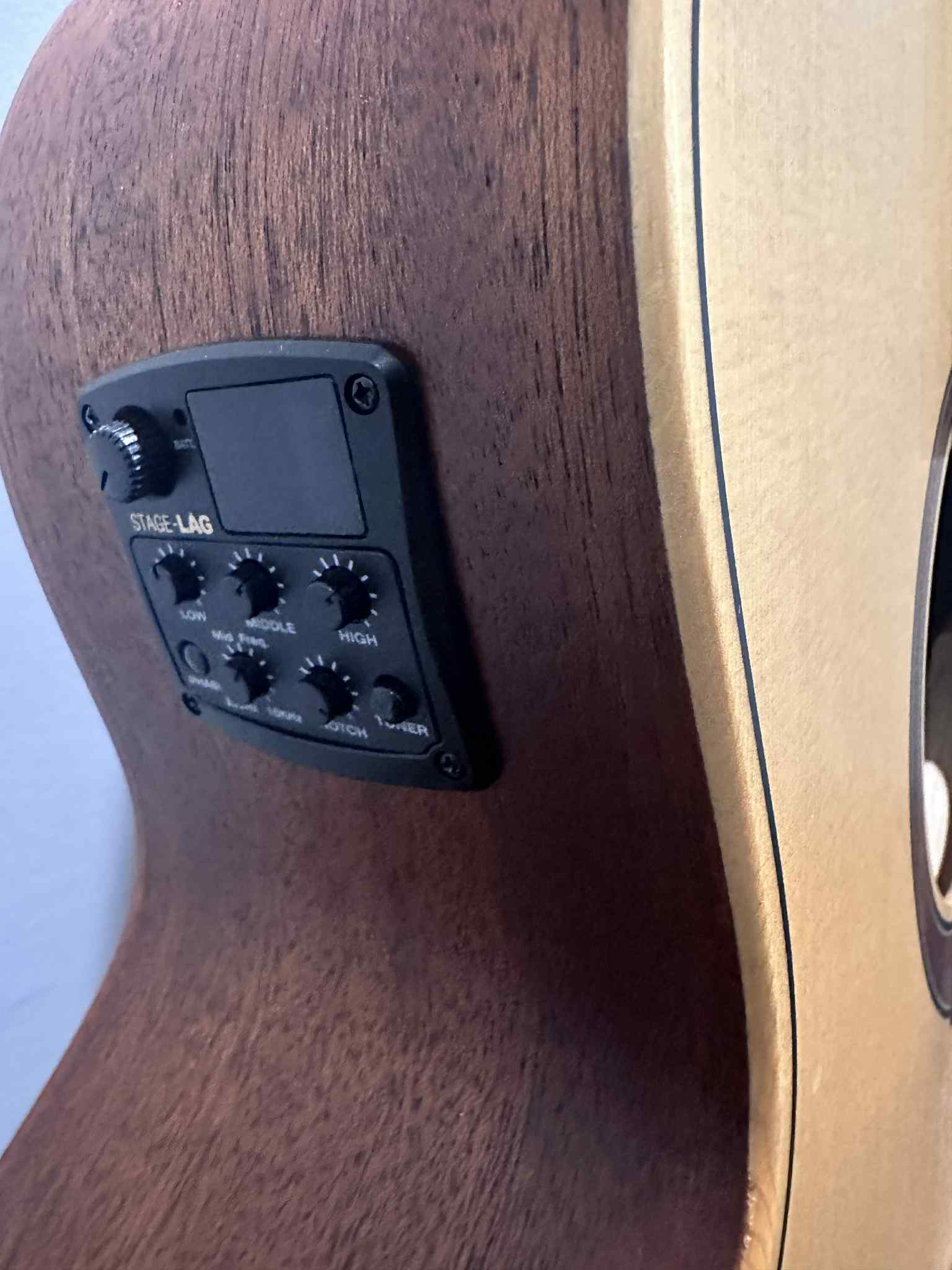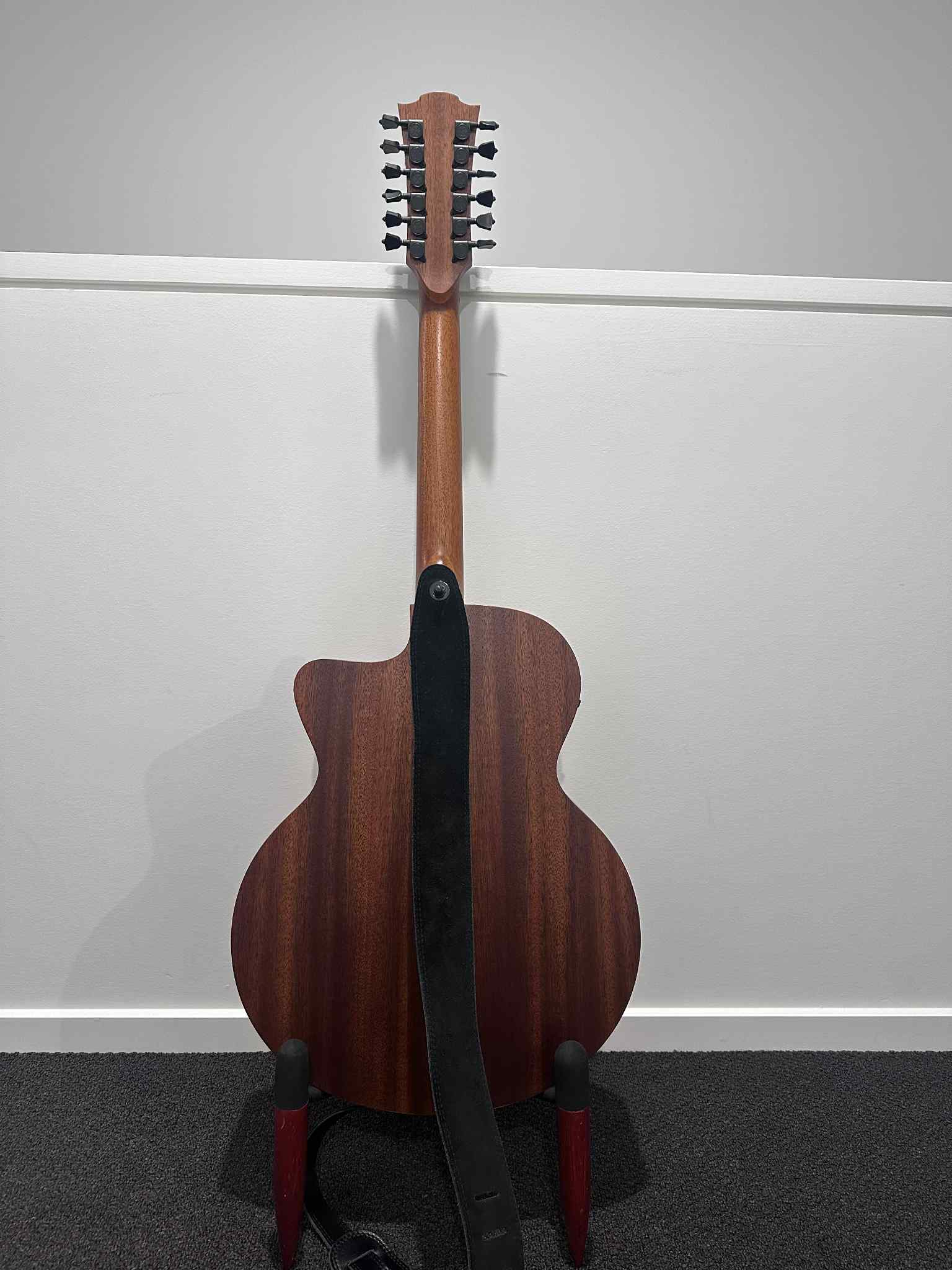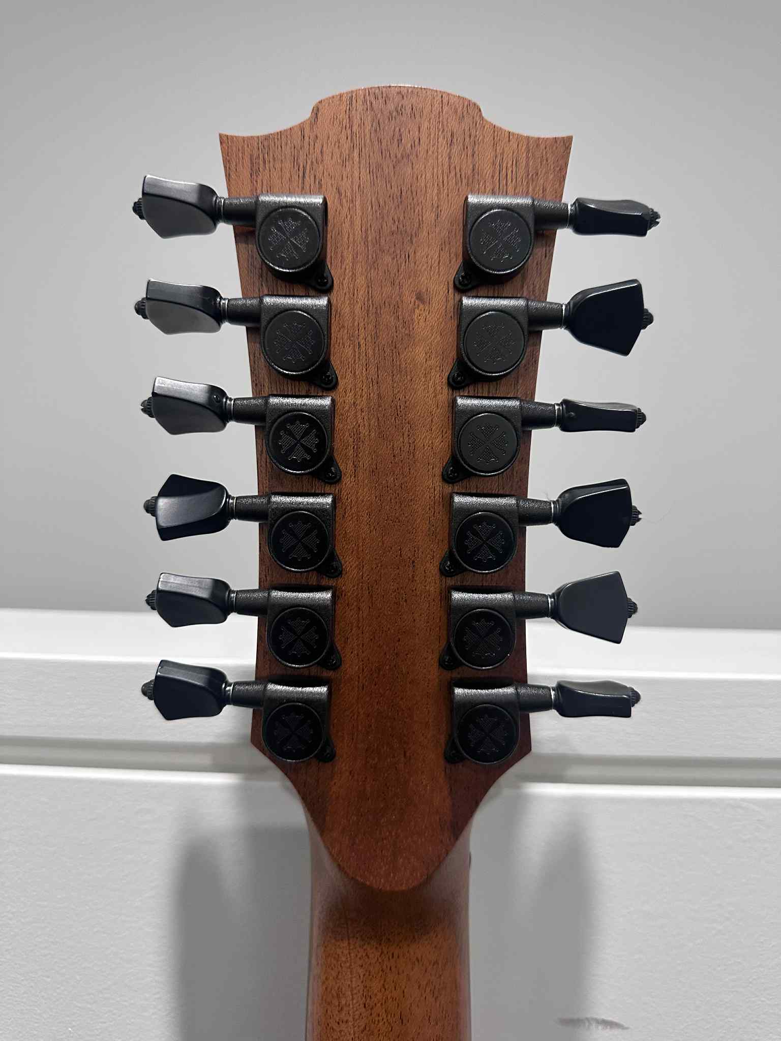 Lag Jumbo 12 Strings Guitar Top: Engelmann Spruce Back&Sides: Khaya (Mahogany family) Fingerboard&Bridge: Brown Brankowood Nut&Saddle: Black Graphite Tuners: Black Die-cast with the Lag Occitan Cross emblem, 18:1 gear ratio (this rig stays IN TUNE) Electronics: Stage Lag Comes with strap lock buttons and a black leather strap.